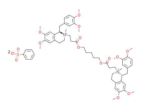 (1R,2R)-2-(2-Carboxyethyl)-1,2,3,4-tetrahydro-6,7-dimethoxy-2-methyl-1-veratrylisoquinolinium benzenesulfonate, pentamethylene ester;51W89;Nimbex (TN);Cisatracurium besylate [USAN:BAN];benzenesulfonate; 5-[3-[(1R,2R)-1-[(3,4-dimethoxyphenyl)methyl]-6,7-dimethoxy-2-methyl-3,4-dihydro-1H-isoquinolin-2-yl]propanoyloxy]pentyl 3-[(1R,2R)-1-[(3,4-dimethoxyphenyl)methyl]-6,7-dimethoxy-2-methyl-3,4-dihydro-1H-isoquinolin-2-yl]propanoate;Isoquinolinium,2,2'-[1,5-pentanediylbis[oxy(3- oxo-3,1-propanediyl)]]bis[1-[(3,4-dimethoxyphenyl) methyl]-1,2,3,4-tetrahydro-6,7- dimethoxy-2-methyl-,(1R,1'R,2R,2'R)-,dibenzenesulfonate;Nimbex;Atracurium besylate 1R-cis,1R-cis form;Cisatracurium besylate (USAN);Cisatracurium Besilate(96946-42-8);1R-cis,1R′-cis (Cisatracurium Besylate); |